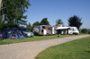 På campingpladsen er der både åbne pladser og lidt mere lukkede pladser med hæk.