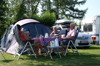 Campingpladsen har to store telteområder. Der er mulighed for at tage sin bil med helt ned til sit telt.