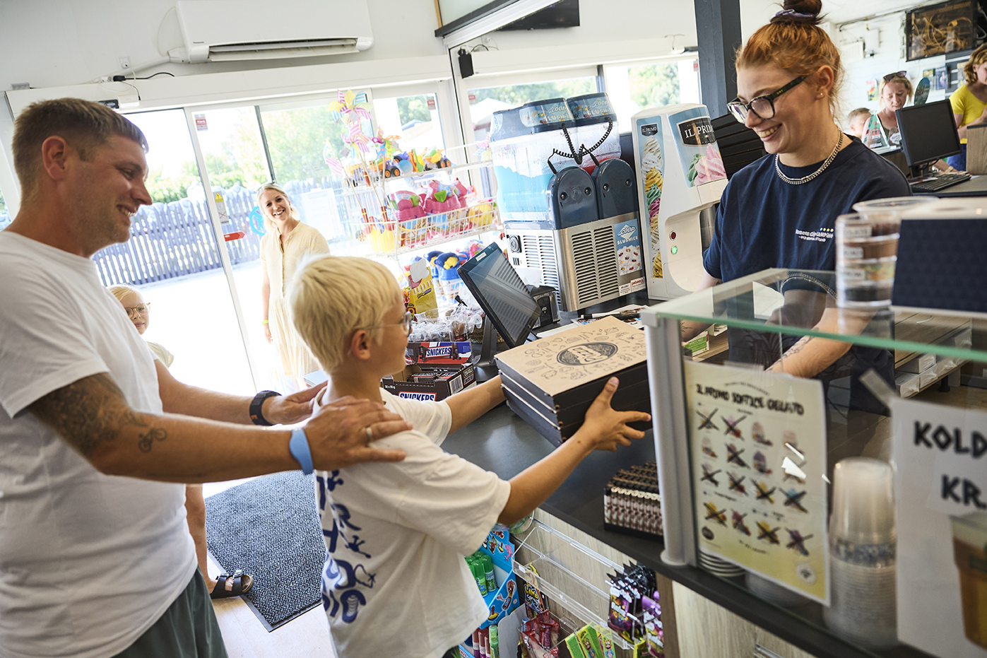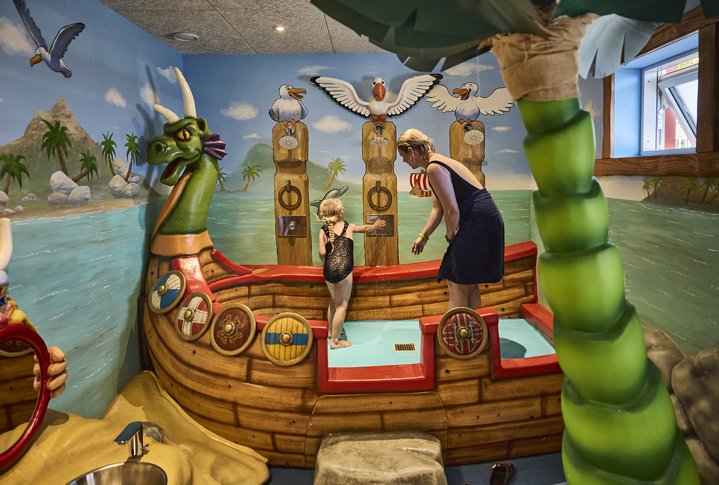 Campingpladsen byder også på et badeværelse med vikingetema, som gør selv de daglige rutiner til en oplevelse for børnene. Her er gode rammer for leg, nye venskaber og tryg ferie – mens du kan slappe af og nyde roen og naturen.