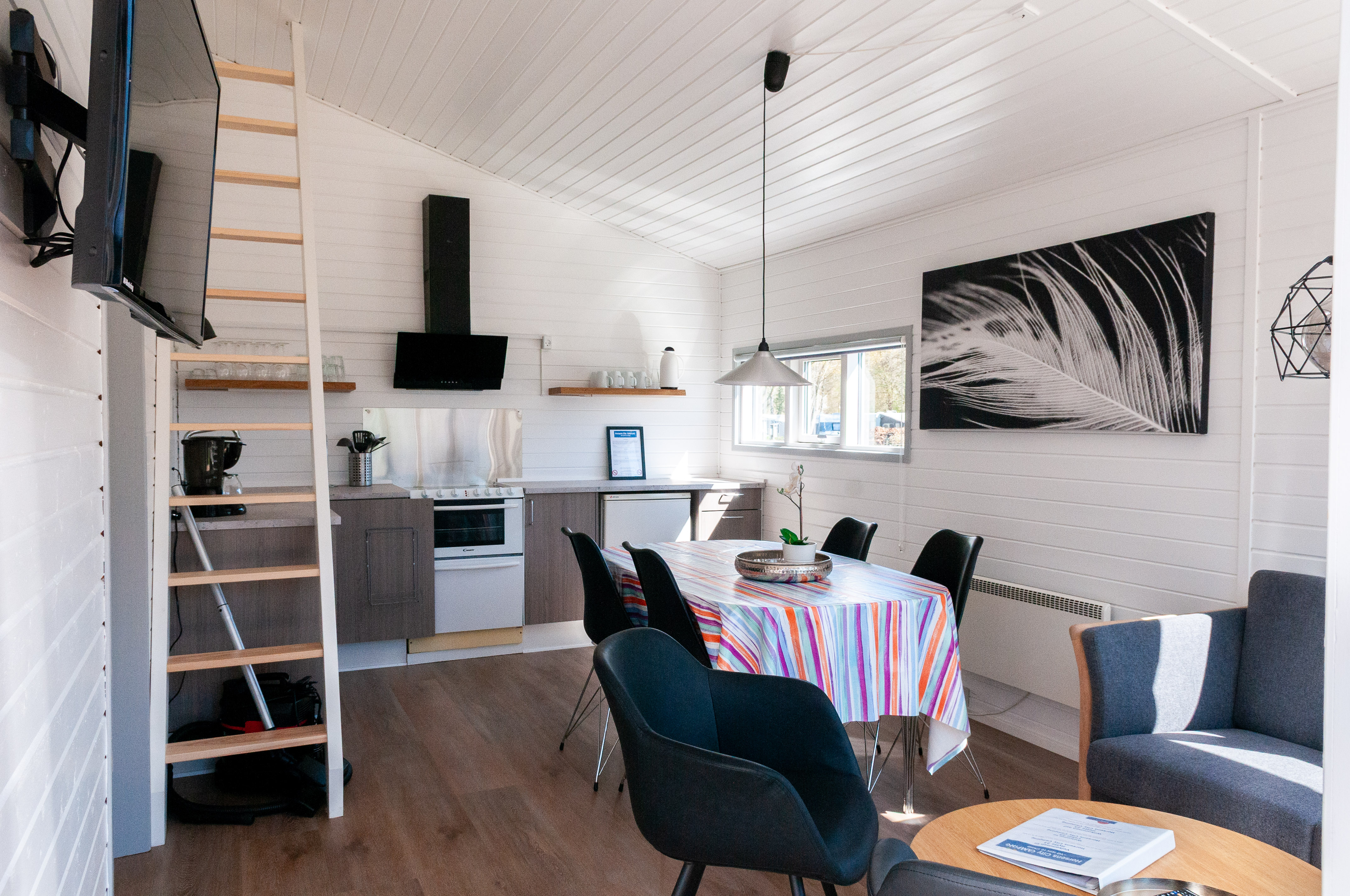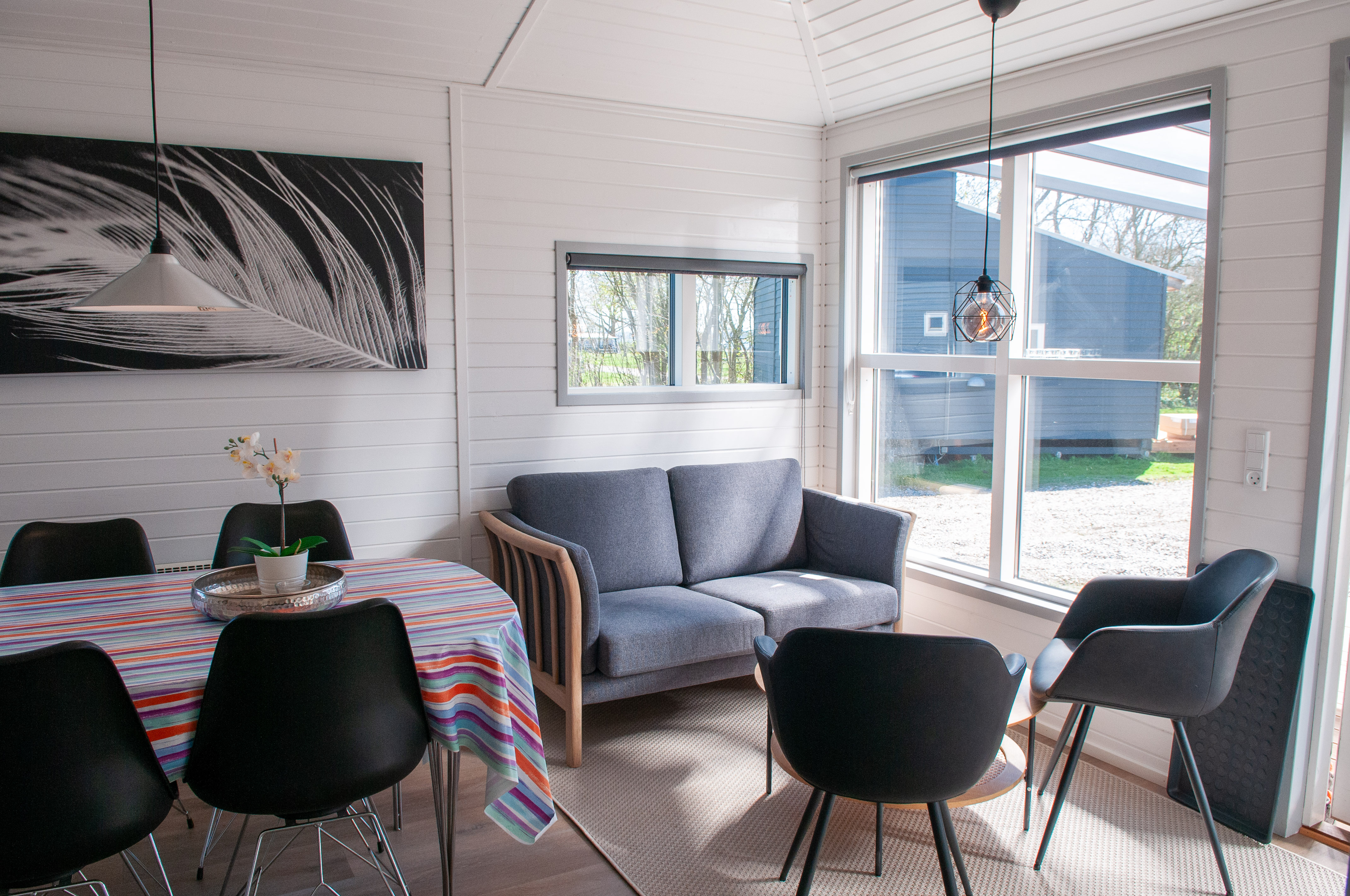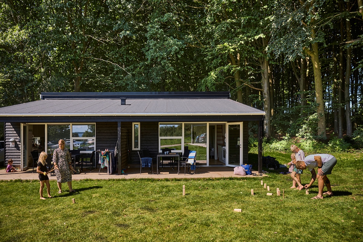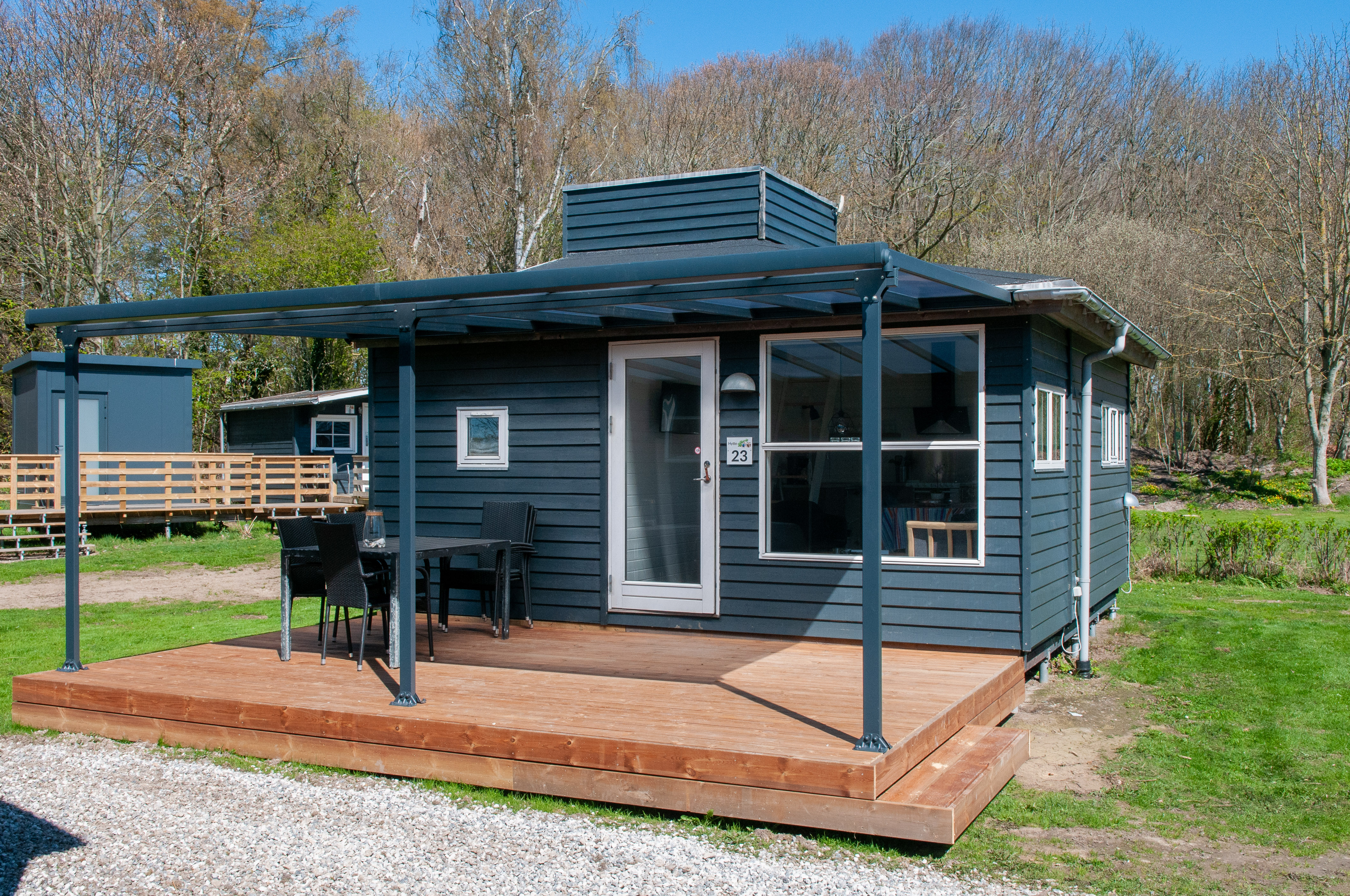 Prøv vores nye luksushytter på 30m2 med plads til hele 6 personer og med toilet og bad i hytten og en flot udsigt over pladsen og fjorden.