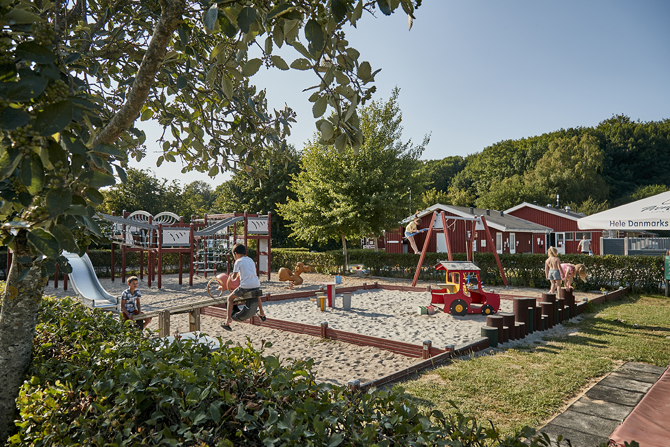 - Pladser tæt på legeplads, pool og fællesfaciliteter