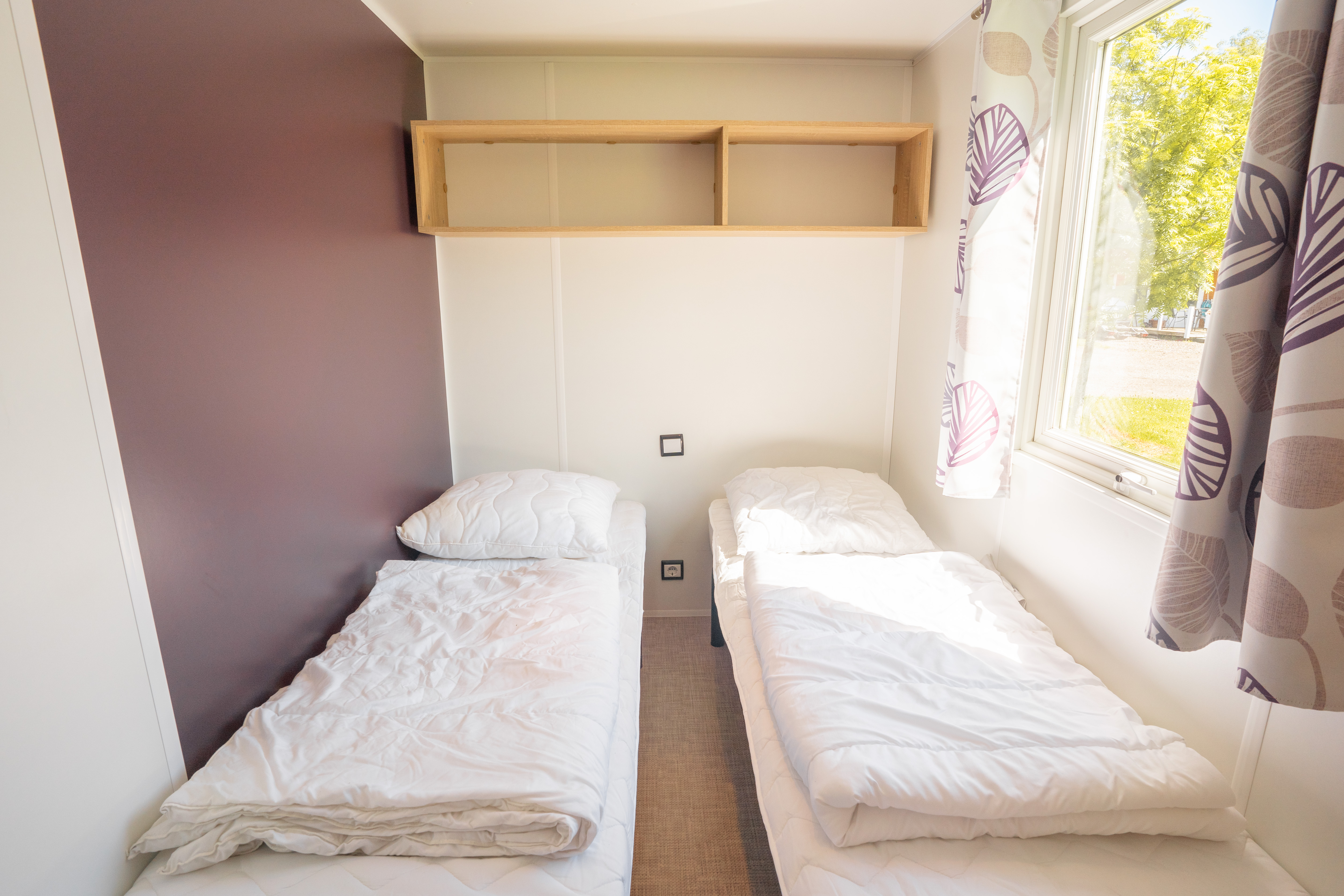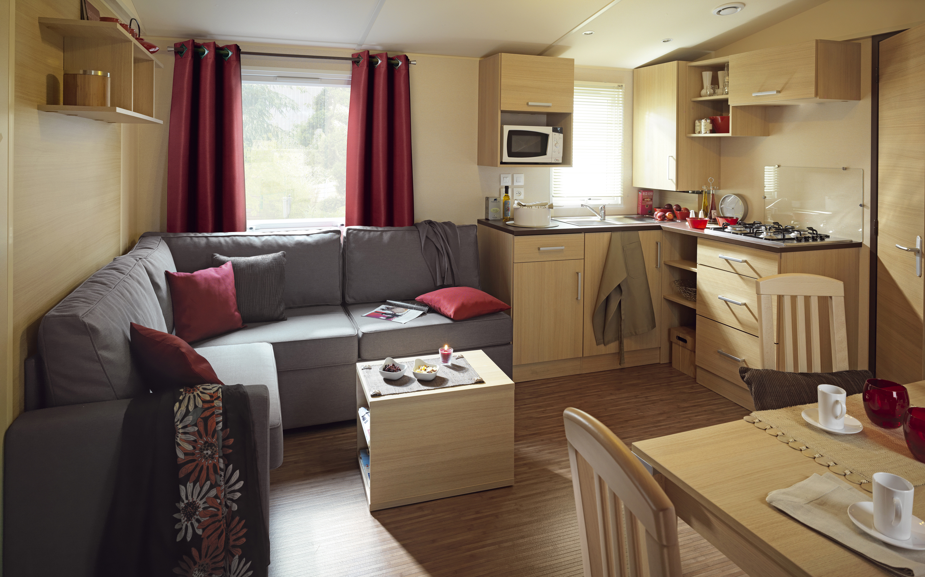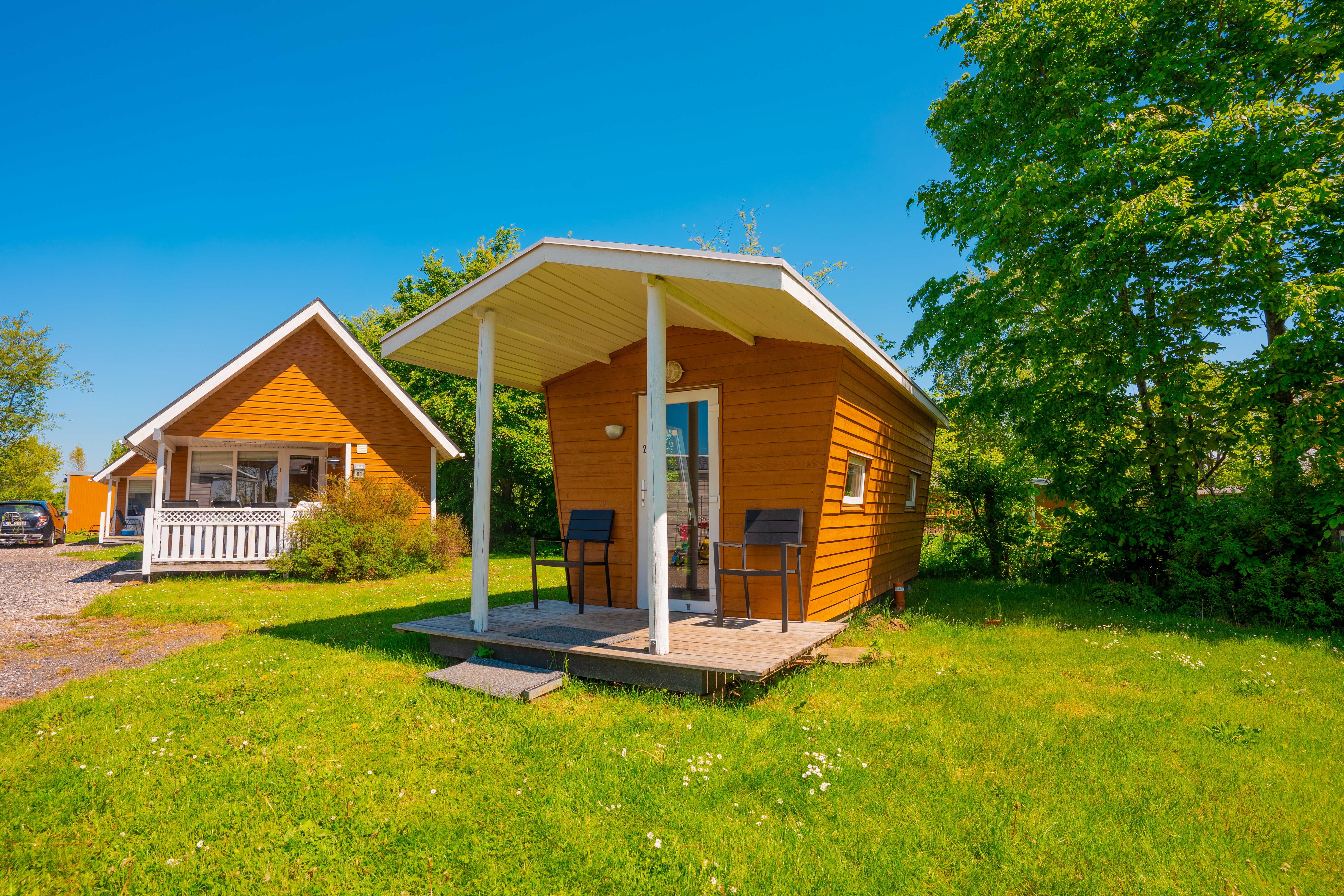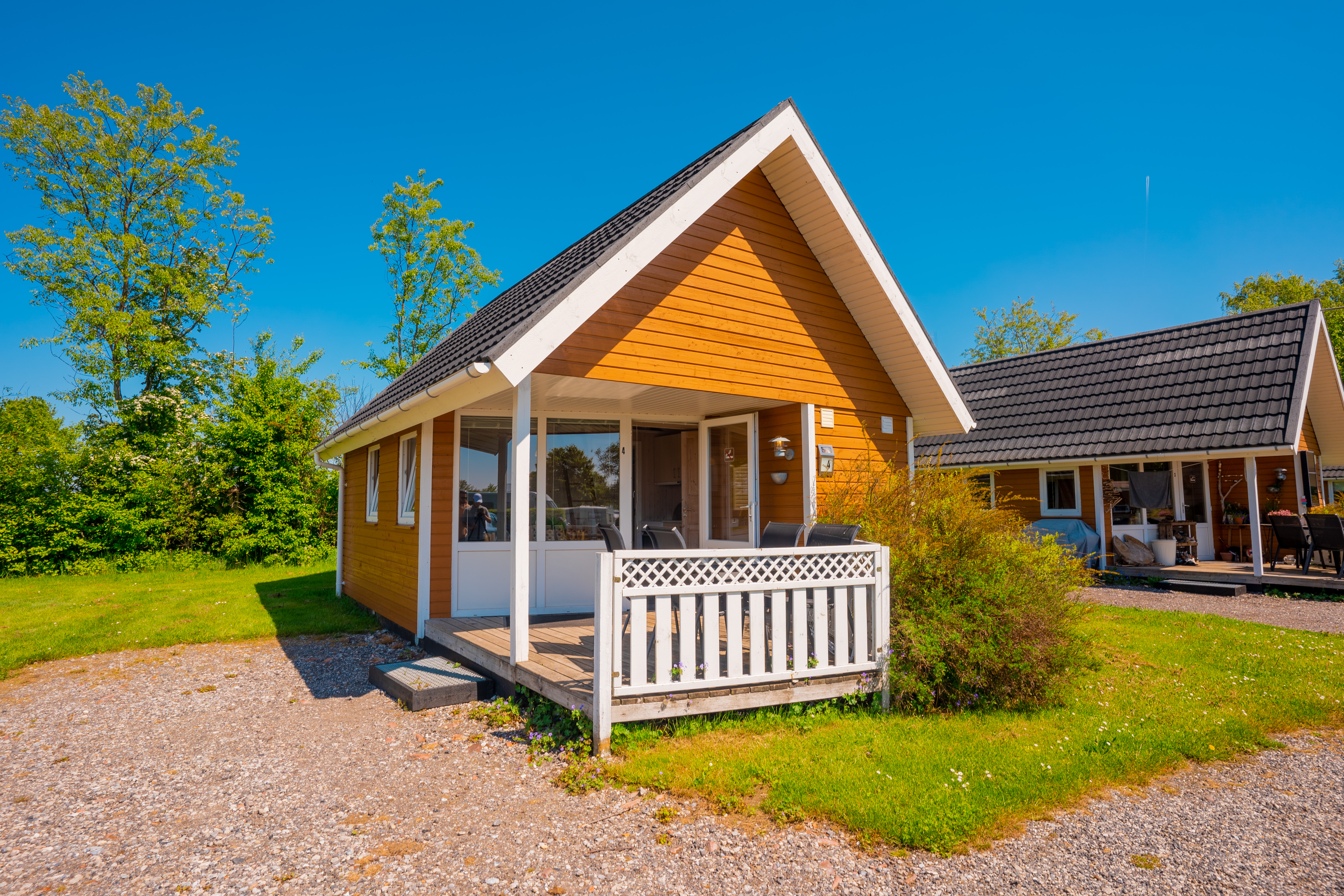 Vi udlejer lækre mobilehomes til 4-6 personer. De er på 26-34m2 med opholdsrum, 2 separate soveværelser, bad og toilet, køkkenalrum samt dejlig stor terrasse.