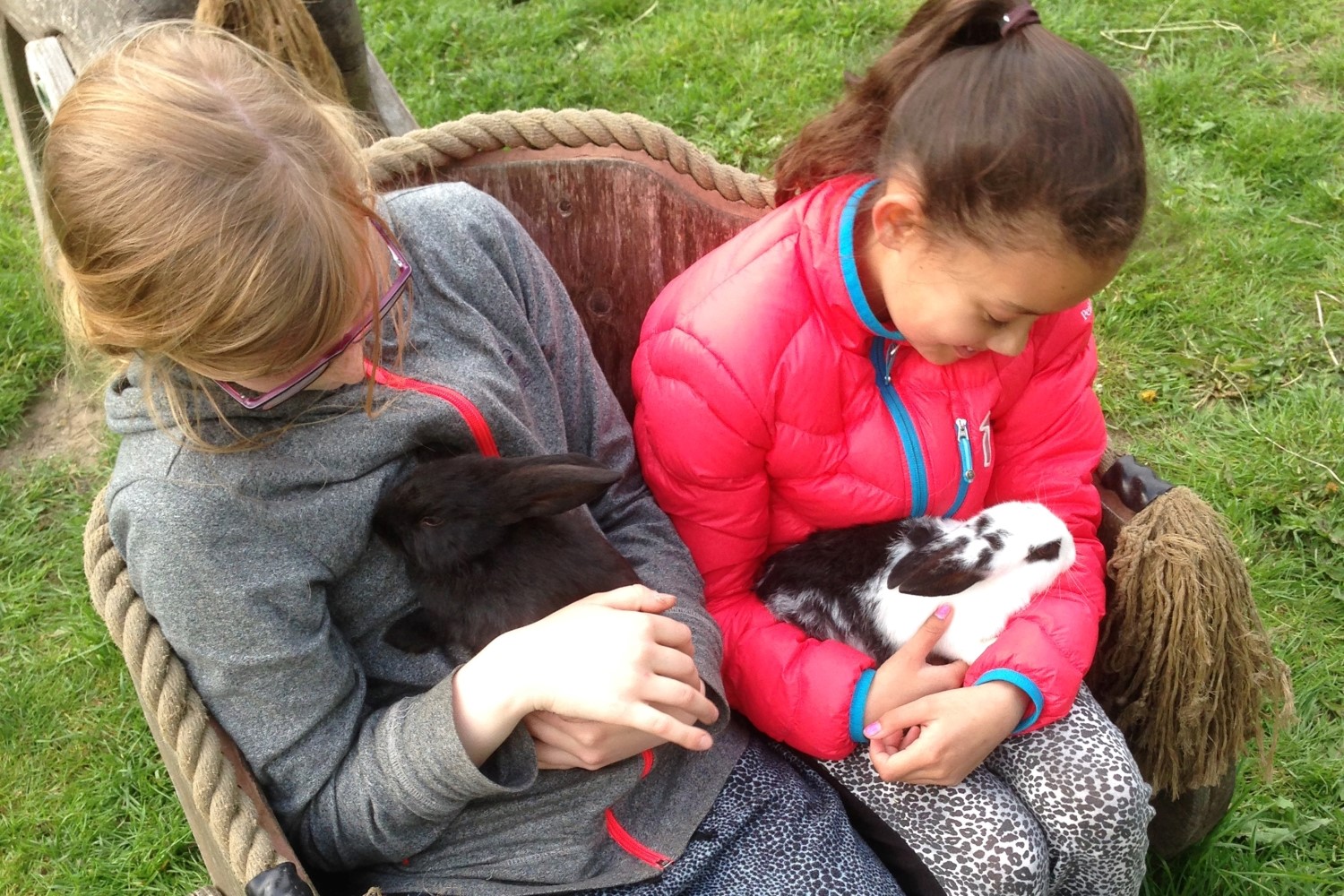 Vi har en masse dejlige dyr på pladsen: Grise, æsler, får, geder, kaniner og moskusænder. Alle disse bondegårdsdyr elsker at blive beundret, og nogle vil gerne nusses. Vi gør opmærksom på, at vi forsøger at have en naturlig cyklus i vores dyrehold så der kan ikke forventes så mange dyr i vinterhalvåret. Ligeledes er vores æsler kun hos os i sommerhalvåret.