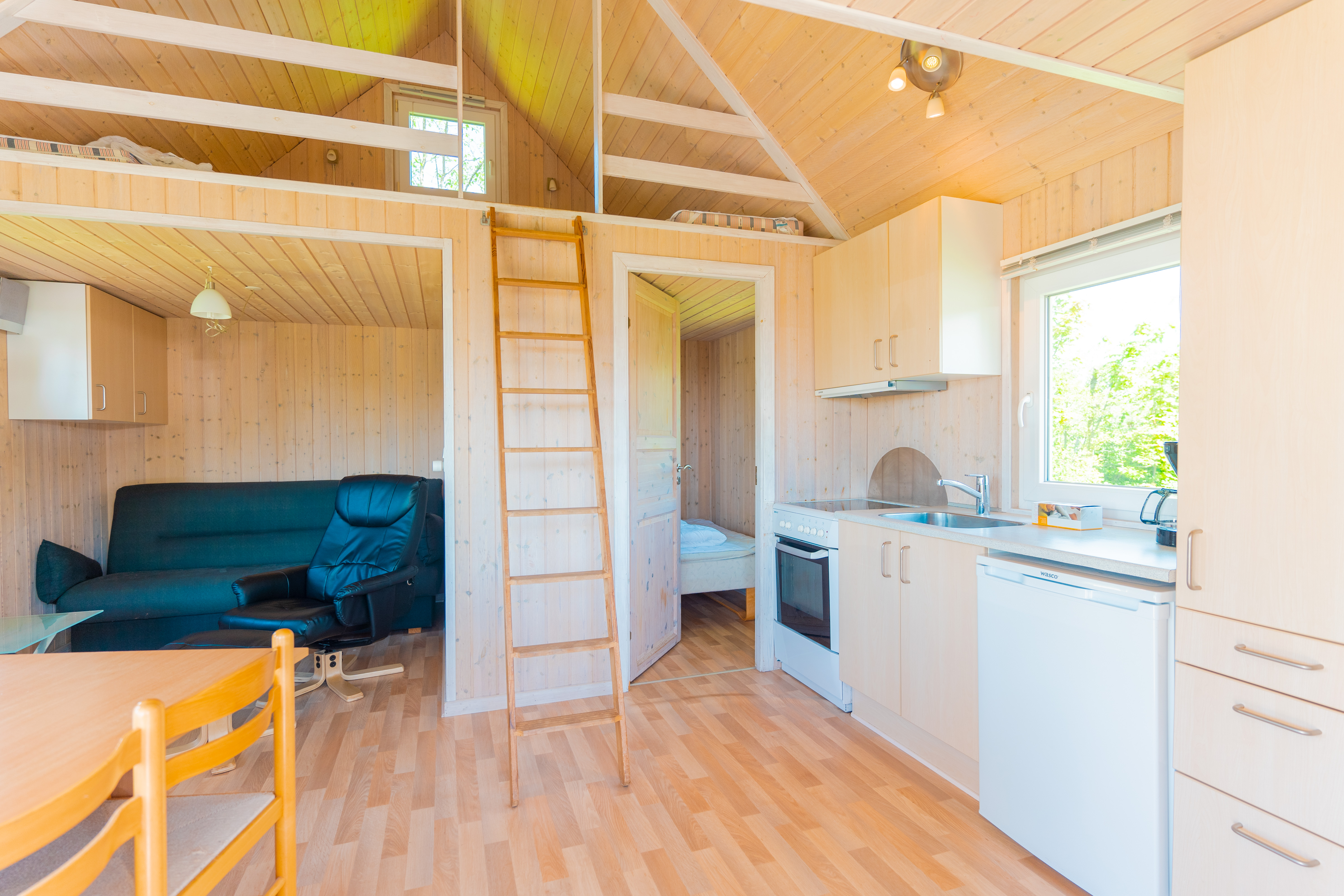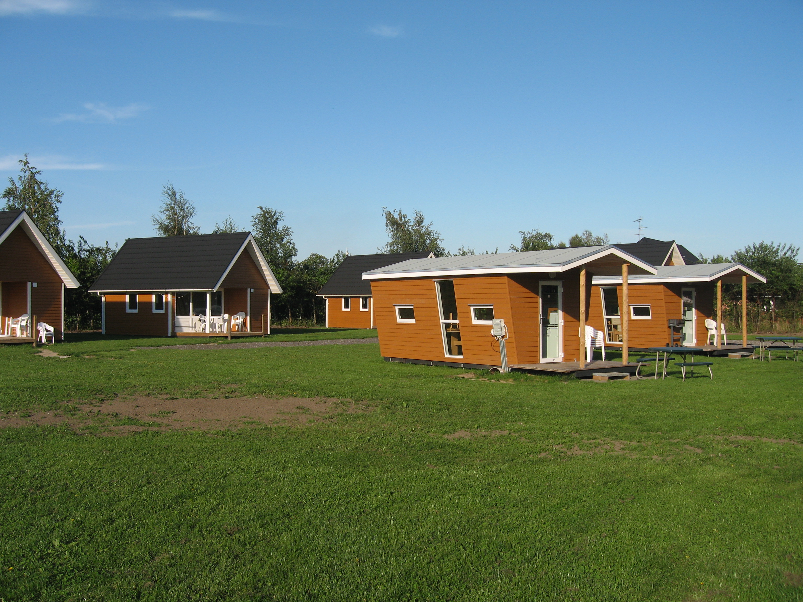 Du kan også leje vore luksushytter på 25 m2 med bad og toilet, soveværelse i topkvalitet samt køkkenalrum - eller vores cykelhytter på 14m2 til 4 personers med koldt og varmt vand samt minikøkken.