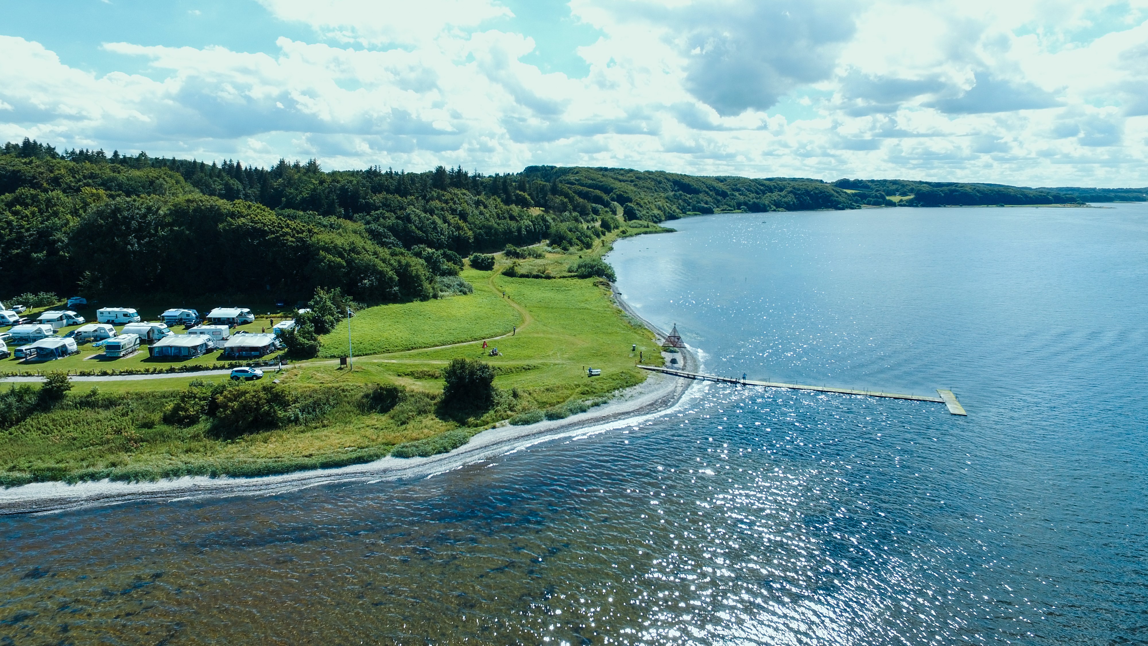 Campingpladsen er indrettet i flere områder, så du kan vælge netop den stemning, der passer til dine feriedrømme. Nogle områder ligger højt med udsigt over fjorden, andre tæt på vandet eller omgivet af beplantning, der giver læ og en hyggelig atmosfære. Uanset hvor på campingpladsen, du holder til, er naturen og udsigten en naturlig del af opholdet.