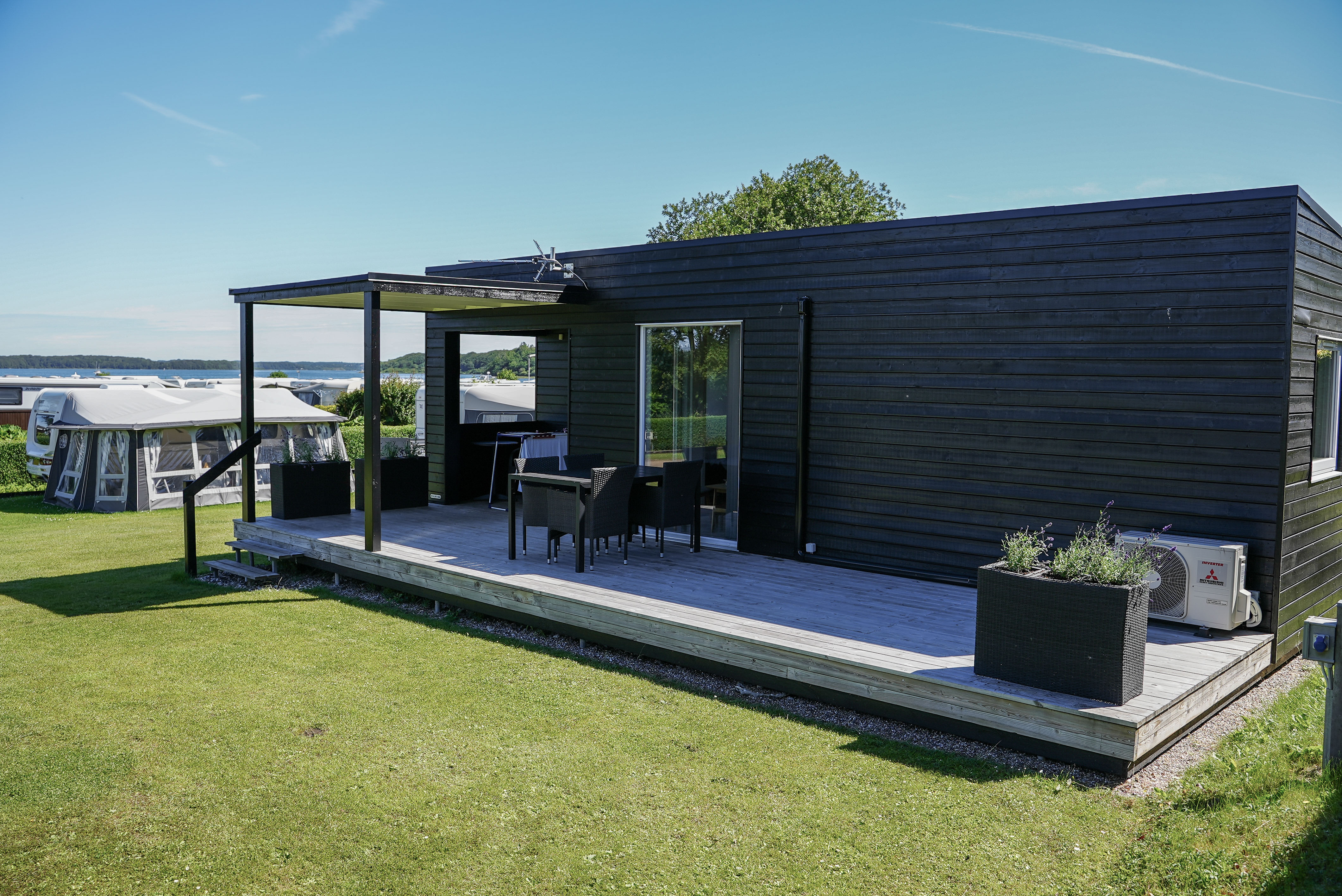 - Autocamperpladser med egen træterrasse – Beliggende i 1. parket med udsigt over Mariager Fjord.