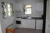 3 hytter på 10 m2 med køleskab, tekøkken og spiseplads. Hytten er til 2 personer.