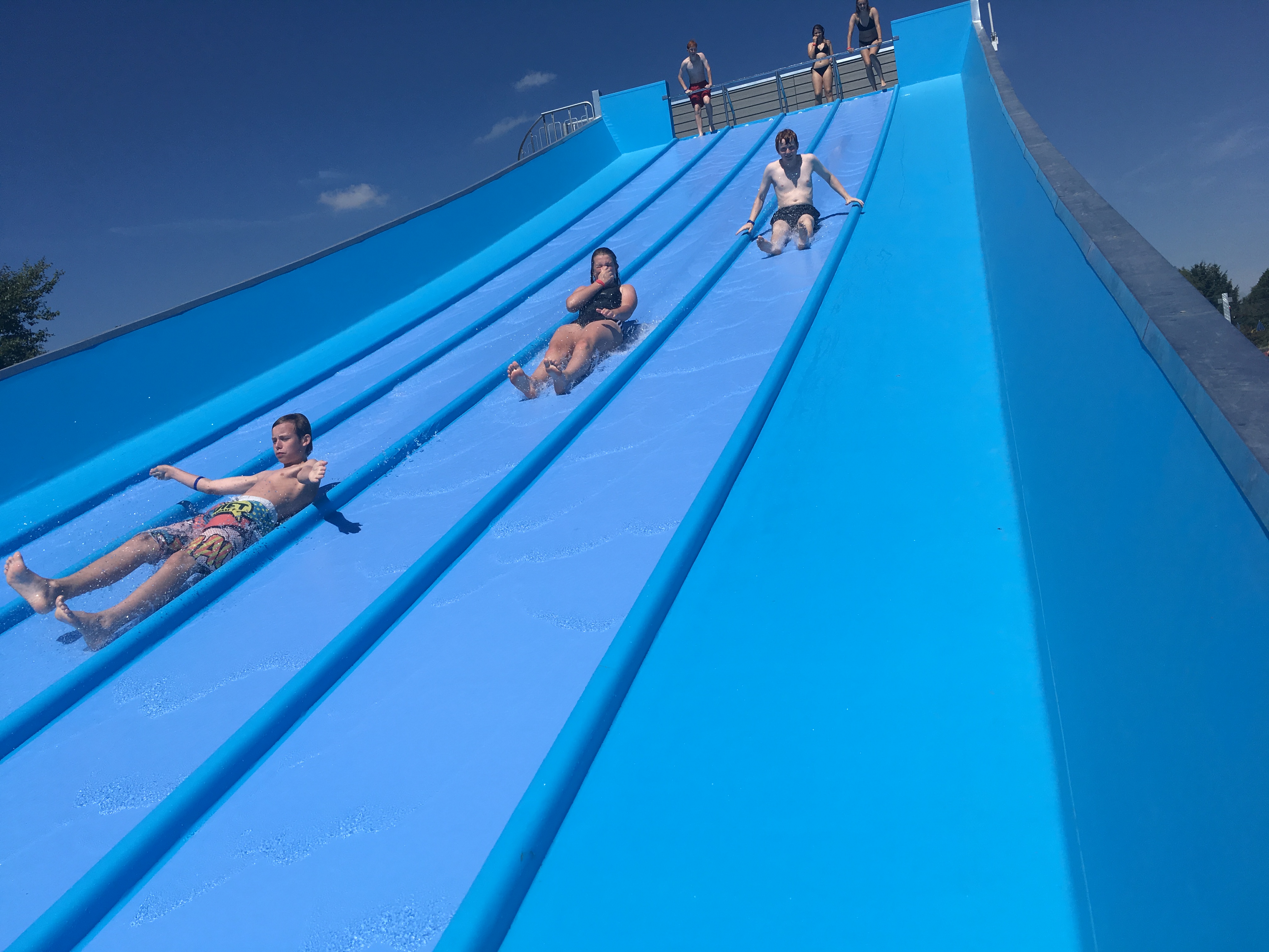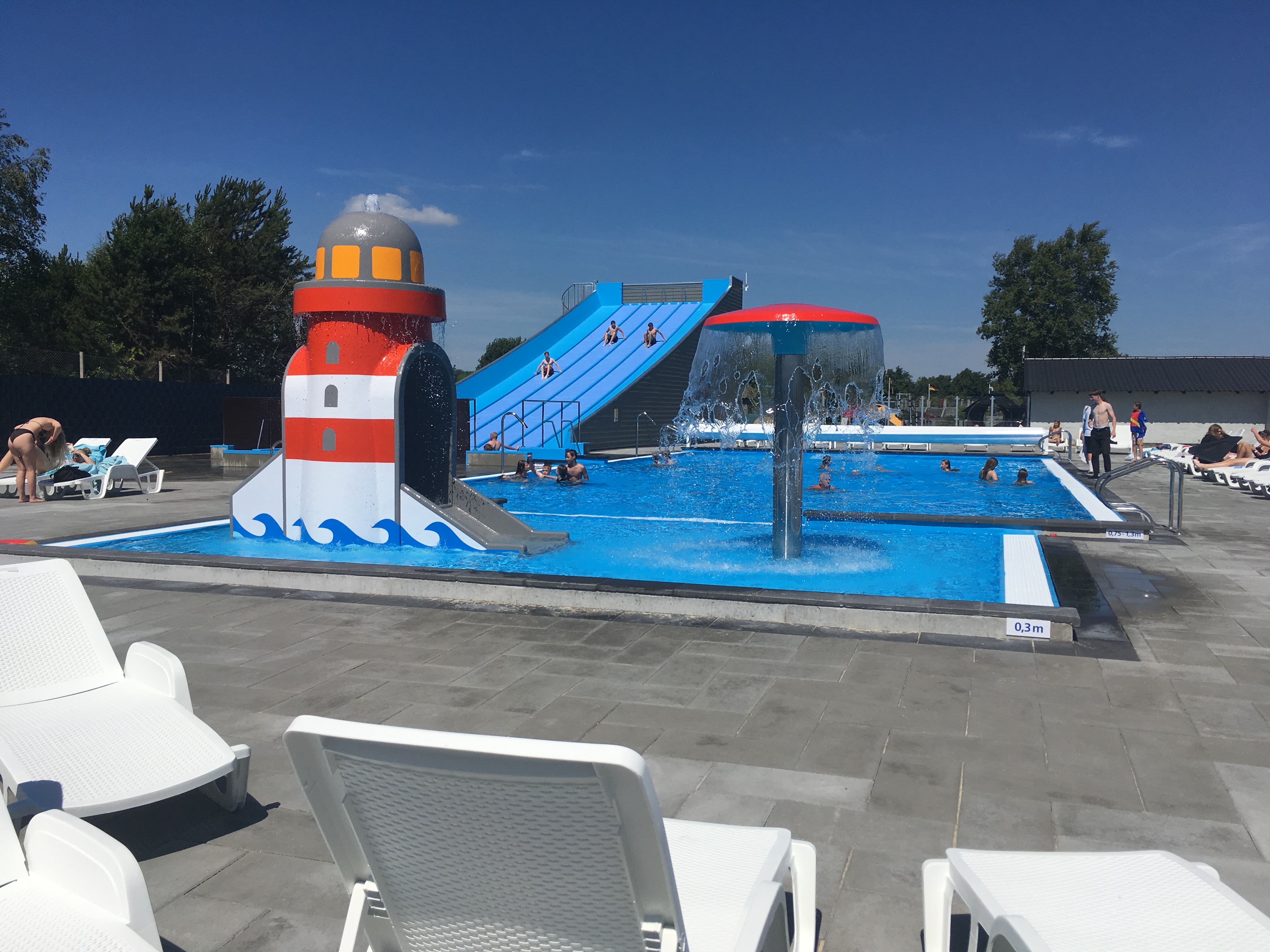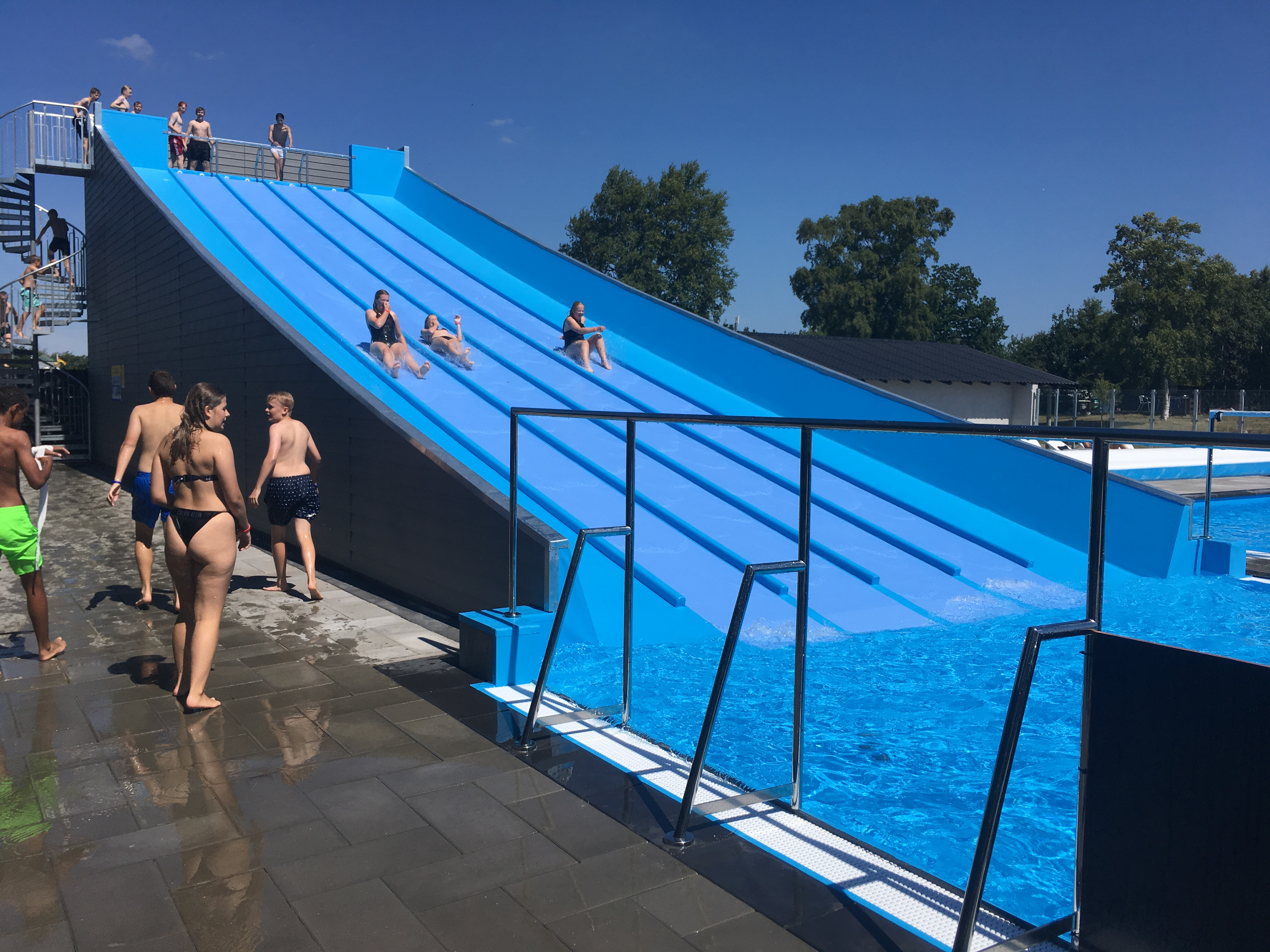 Ganz neu: Beheizbares Freibad selten unter 26° mit Surf Hill Wasserrutschbahn, Kinderpool und Sonnenterasse