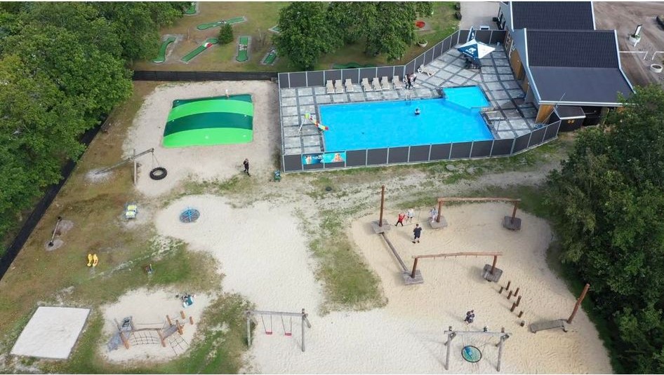 Der Poolbereich ist perfekt für warme Sommertage und bietet viele Möglichkeiten zum Spielen und Entspannen.