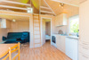 We rent out beautiful mobile homes for 4-6 people. They are 26-34m2 with a living room, 2 separate bedrooms, bathroom and toilet, kitchen/living room and a nice large terrace. You can also rent our luxury cabins of 25 m2 with bath and toilet, top-quality bedroom and kitchen-living room - or our bicycle cabins of 14 m2 for 4 people with cold and hot water and a mini kitchen.